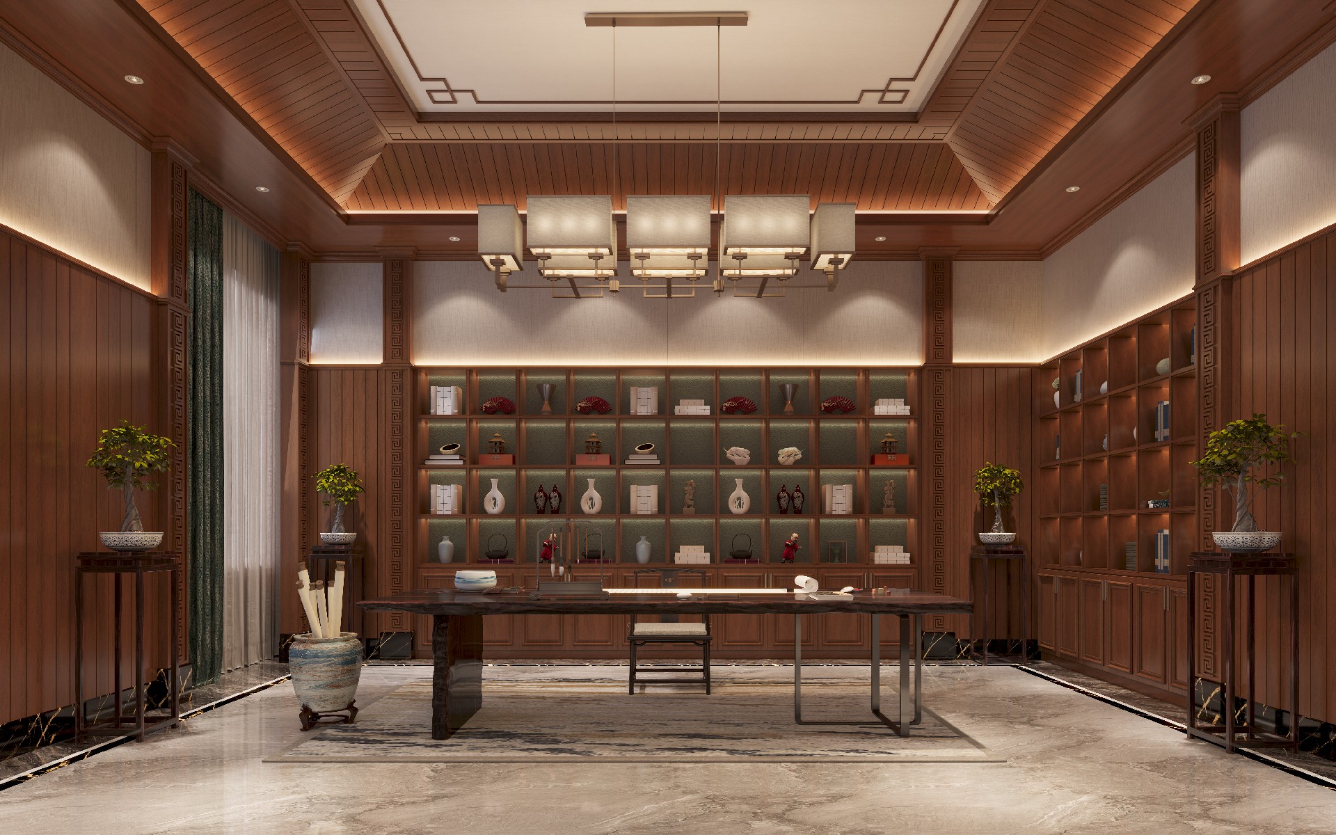 踏入被黃花梨木墻板溫柔環抱的書房靜室。空氣中浮動著木材的沉香與宣紙的微甘,讓人未及開卷,已覺心神安寧。