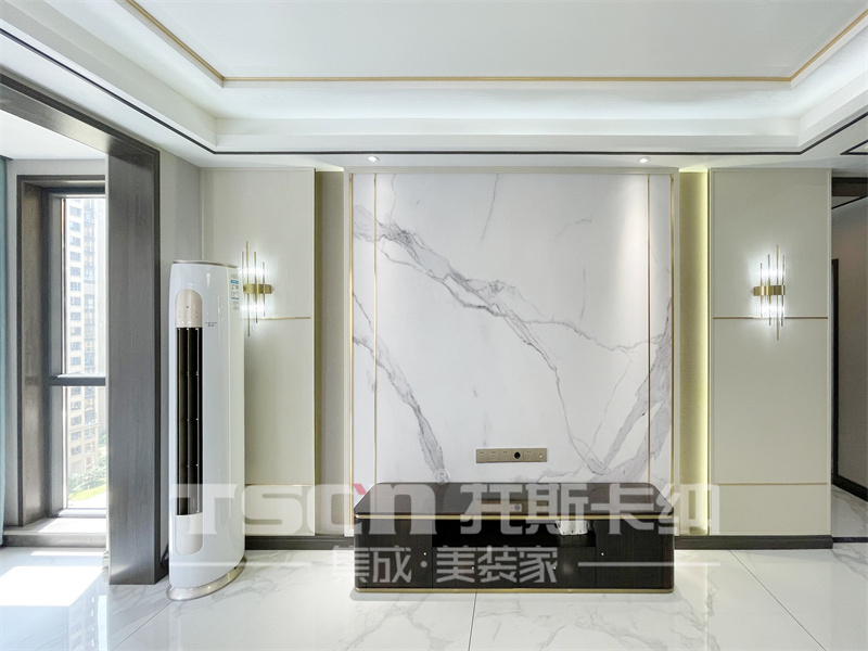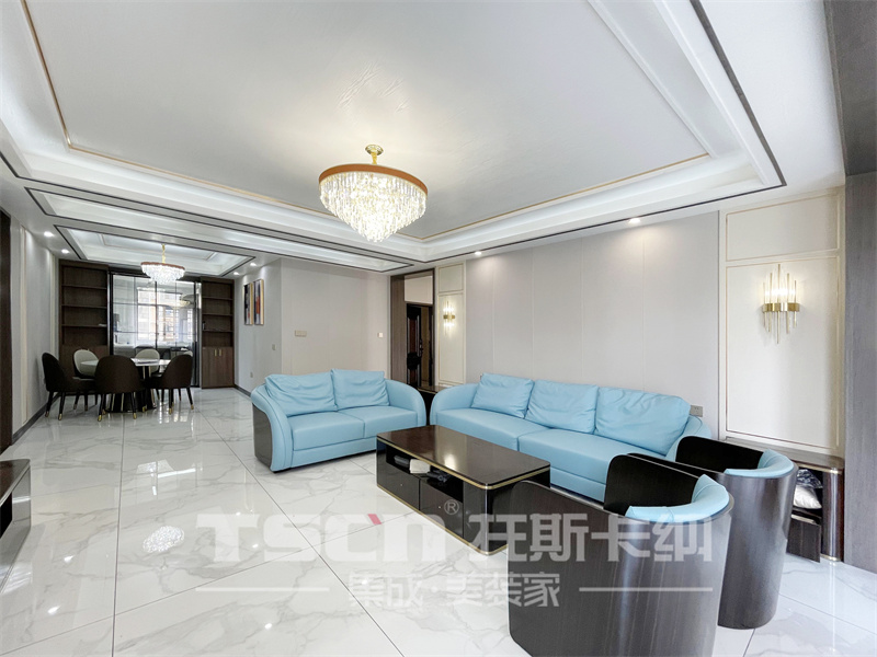 設(shè)計(jì)要素:全屋護(hù)墻板,搭配金屬細(xì)線條,打造精致輕奢感。整體硬裝色調(diào)淡雅,搭配深色軟裝,深淺相宜,彰顯貴氣。